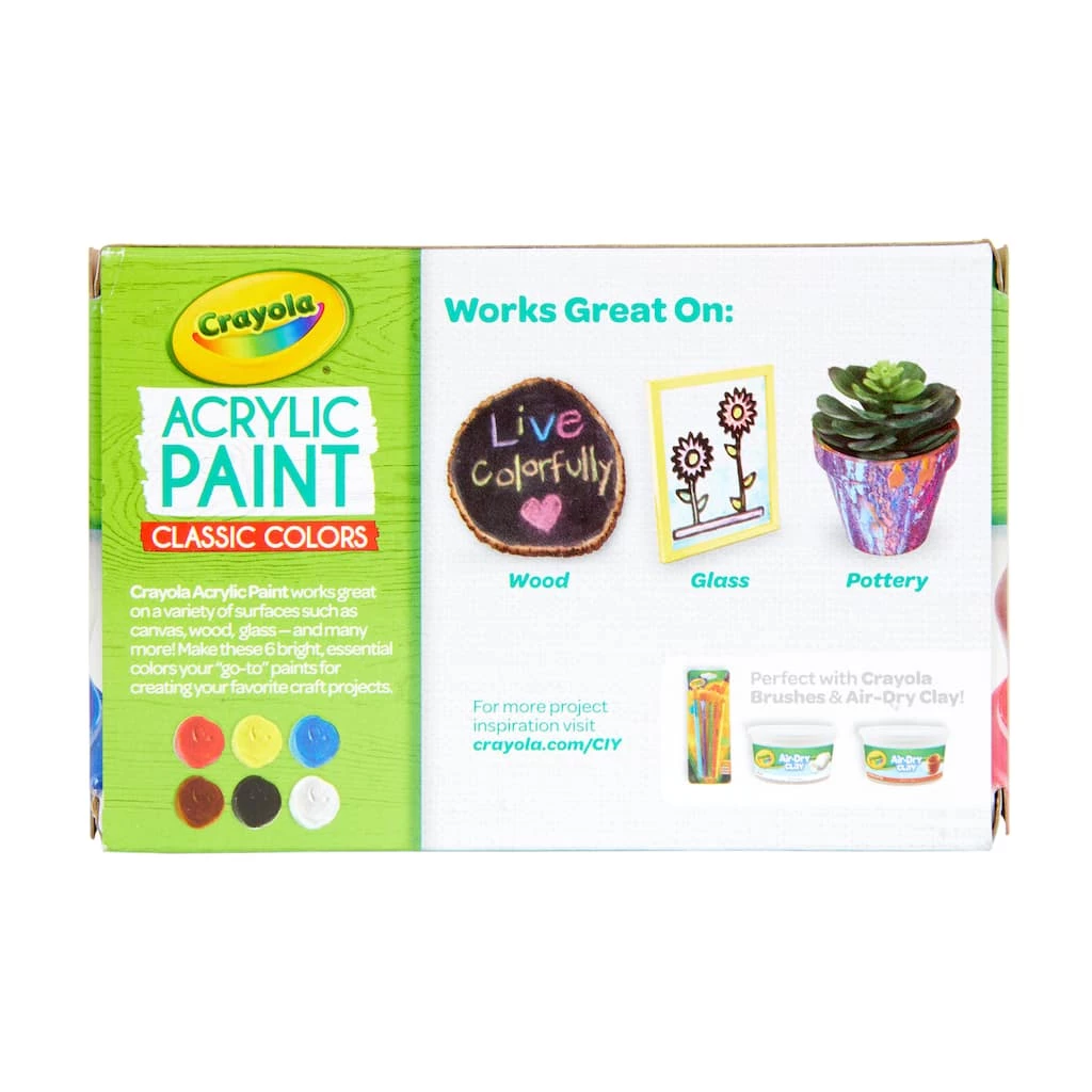 Provide your budding artist with a great introduction to the fine arts with these quality acrylic paints. Just like paints the professionals use, these acrylics have a thick consistency and vibrant colors, ideal for art and school projects on canvas, wood, metal, ceramics and even fabrics. This set of permanent, water-resistant paints includes deep red, brilliant blue, brilliant yellow, burnt umber, ivory black and titanium white.