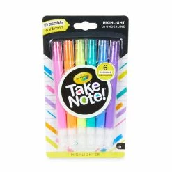 This set of erasable highlighters from Crayola can be used to highlight and erase any word or sentence without damaging books or documents. These dual-tipped highlighters feature bright colors on one end and clear ink tips on the other end, which can easily be used to erase colorful highlights.