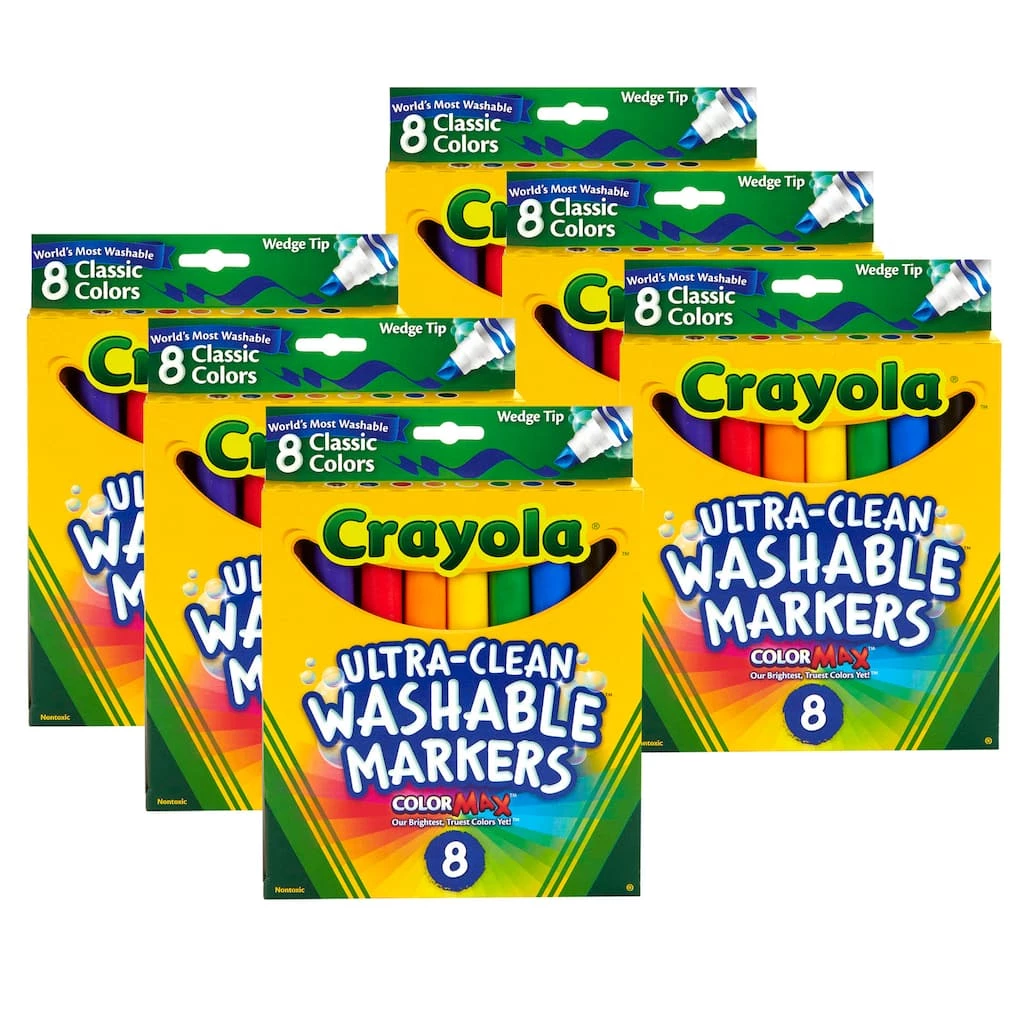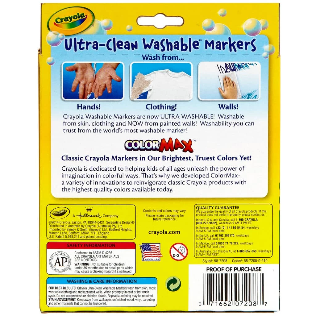 Kids love to get creative with color, but parents want to keep the color where it belongs and easily remove it where it doesn’t! The world’s most washable non-toxic markers now come in an improved Ultra-Clean formula that washes easily from skin, clothing, and common household surfaces—even painted walls. Markers feature a wedge shape for unique lines and easy shading. Classic Markers provide artists with classic Crayola colors that feature Color Max, our most vibrant color yet.