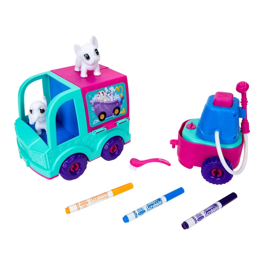 The Scribble Scrubbie Grooming Truck could be rolling into your home soon! This mobile play set is the fun way to take care of your Scribble Scrubbie pets’ needs—then just fold it up and roll! All Crayola Scribble Scrubbie pets are washable so you can color and customize with the included markers then wash them and start again. Features 1 Toy Truck with cart and hand-pump hose, 2 Scribble Scrubbie Pets, 3 washable markers, and 1 brush. Ideal birthday or holiday gift for girls and boys. Perfect for kids, ages 3 and up.