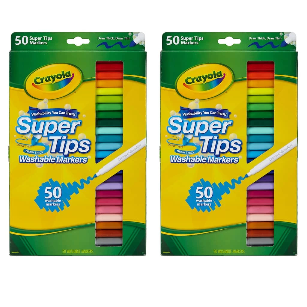 Thanks to the specially designed conical tips, Crayola SuperTips Washable Markers give you the versatility to use them for thin line drawing as well as for thick lines while coloring in large areas. Featuring vibrant ink that won’t bleed, Crayola SuperTips Washable Markers are a great choice for any writing, drawing, or coloring project. Use these markers for shading, blending, and other coloring techniques for dramatic results. The formula easily washes off skin as well as most fabrics, so you can clean up quickly after arts and crafts time.
