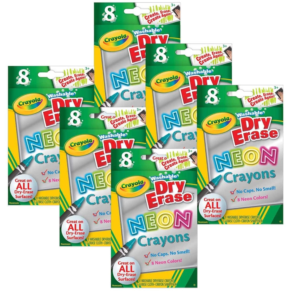 - 6 packs (8 neon crayons per pack, 48 crayons total)