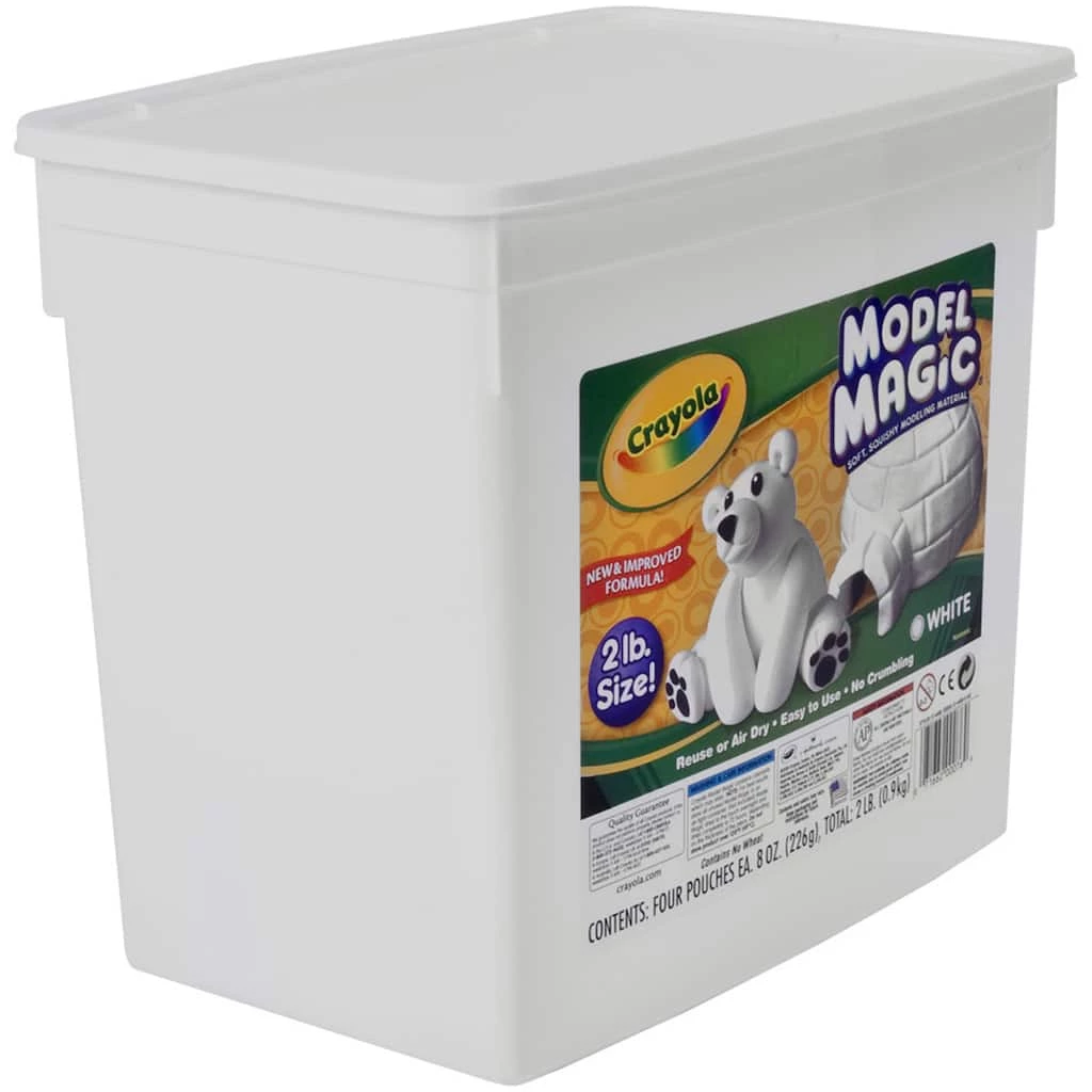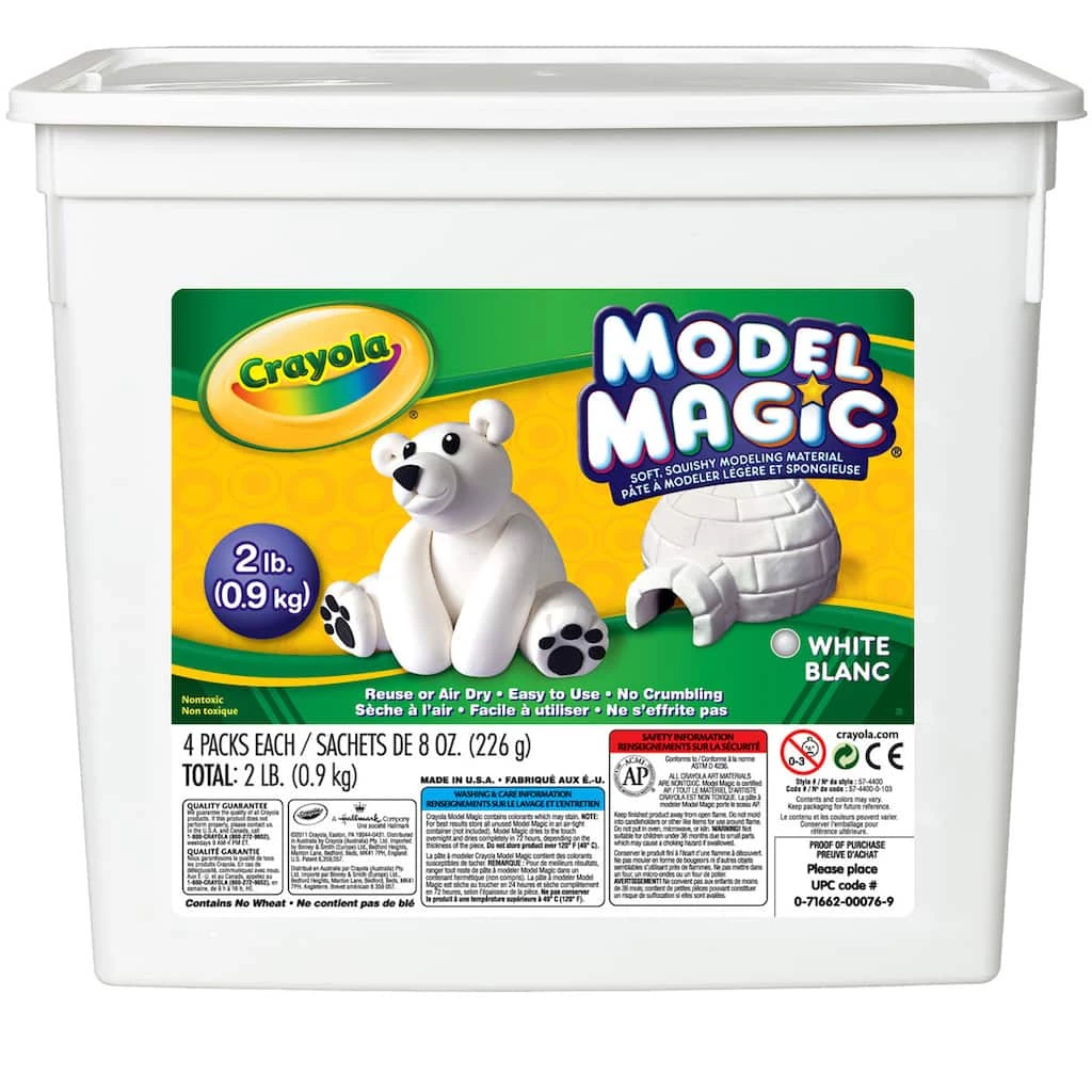 Add a new dimension to creative art projects with Crayolaยฎ Model Magic in White! Model Magic is a soft, easy-to-use modeling material that lets you and your kids create colorful, keepable art. Plus, it’s great to have on hand for slime supplies. This tub makes it easy to bring your daydreams to life! Unlike traditional modeling clay, which can be tricky for young artists to manipulate, Model Magic is designed for ease of use. It usually air-dries within 24 hours. When dry, Model Magic is lightweight and flexible. Makes a great craft activity for kids.