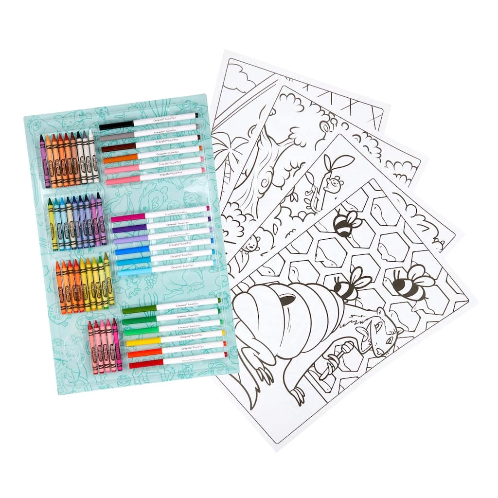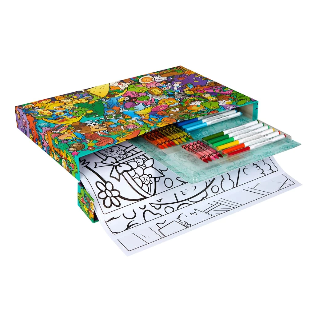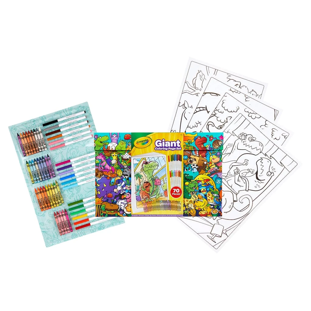 The Crayola Giant Coloring Page Art Set lets kids create big coloring art and keep it in a portable carryall case! This set offers super storage and holds it all, including Giant Coloring Pages. The flip lid and attached handle make it easy to stow and take creative coloring wherever you go. Comes with 32 crayons, 18 Super Tips markers, and 20 Giant Coloring Pages in a colorful storage box. Itโs the perfect coloring set for birthdays, holiday, and everyday gifting. Ideal for kids ages 4 and up.