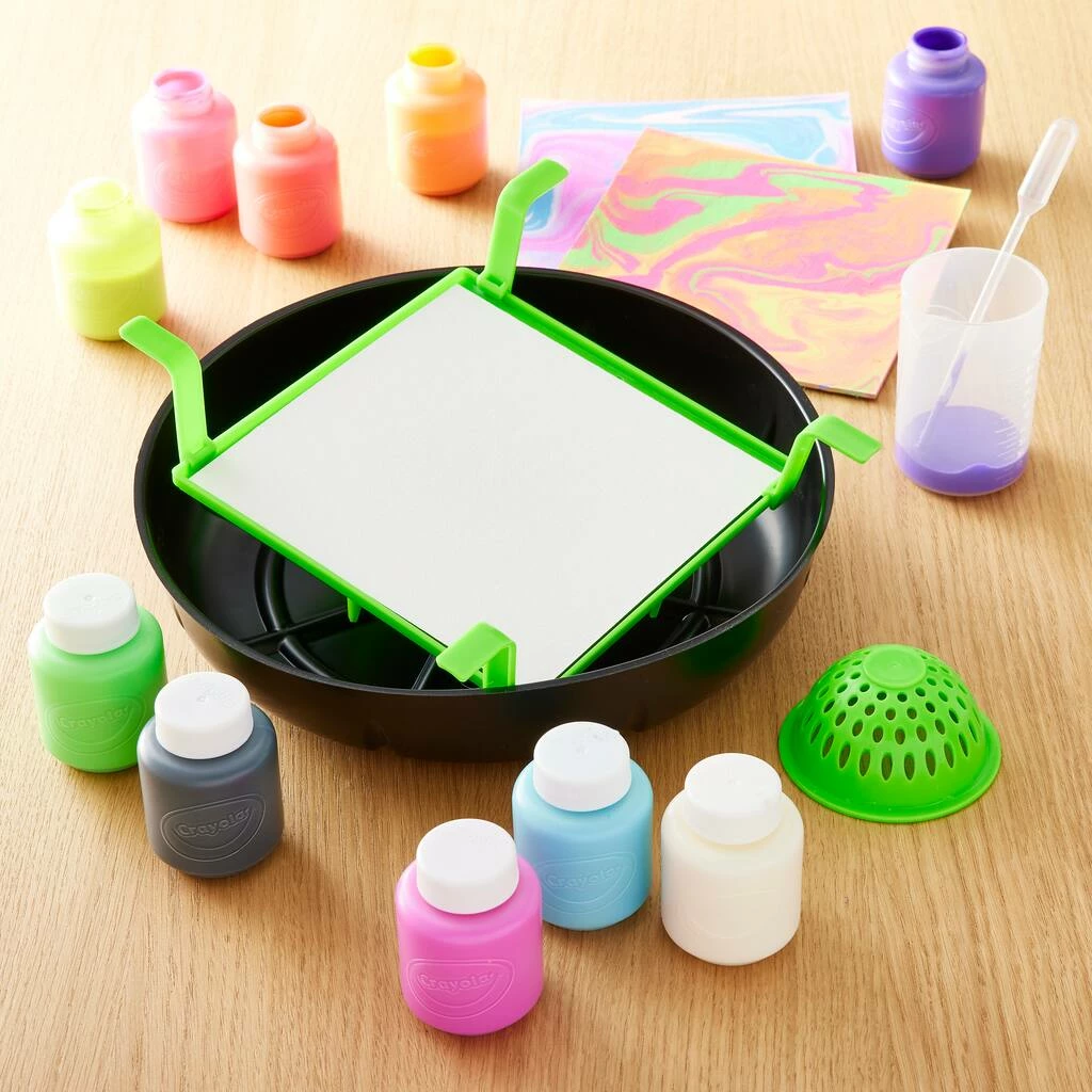 Pour out a colorful masterpiece with Crayola Washable Paint Pour Art Set! Paint pouring is the fun, easy way for even novice painters to achieve beautiful works of art. And there’s no cause to worry either with the included less-mess paint tray. Even the occasional “oops” is no problem with the included washable paint. A truly magical and fun art activity for kids and adults!