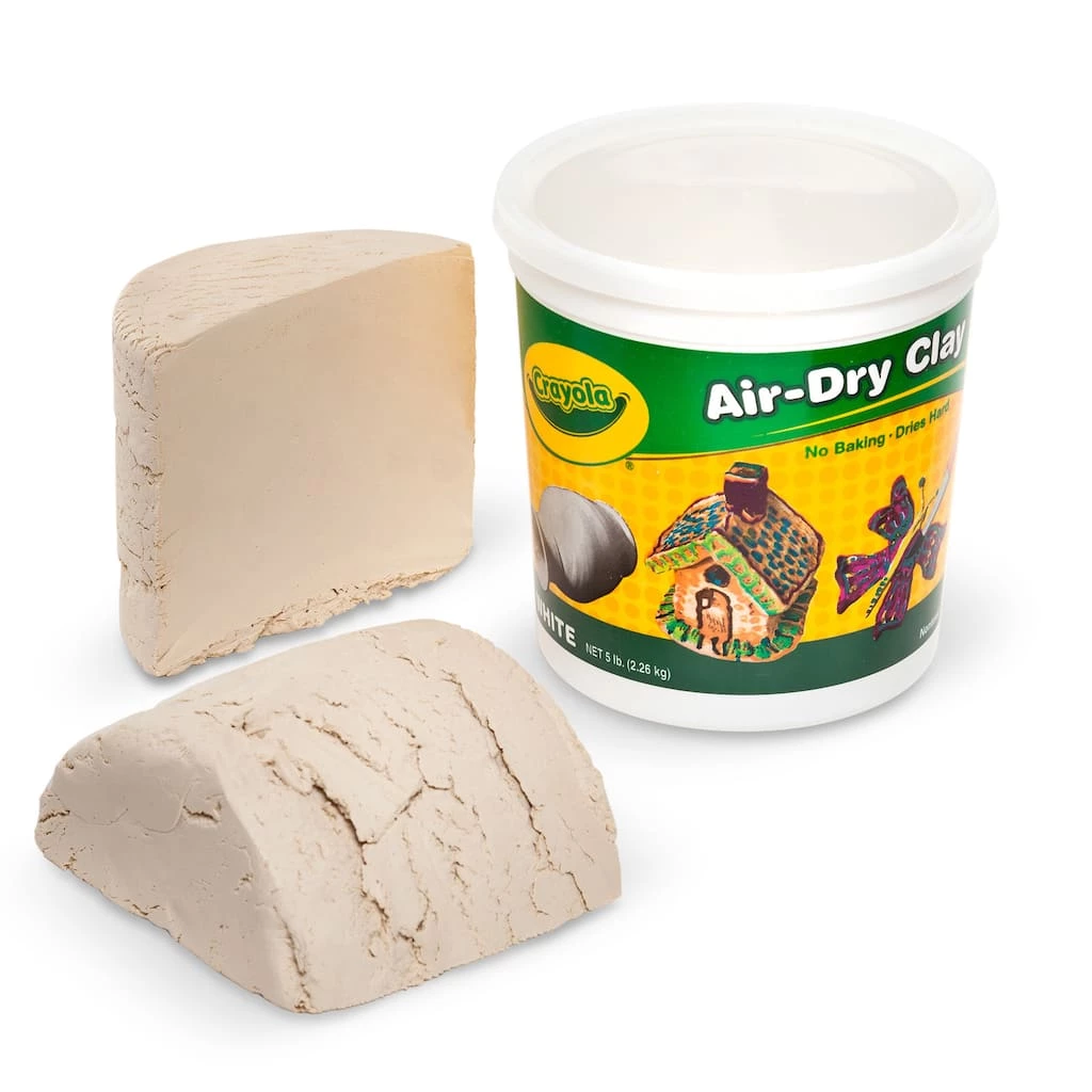Crayolaยฎ Air-Dry Clay is a natural earth clay which air-dries to a hard solid. Use it to make clay sculptures, decorative items or plaques. No baking or firing needed. Minimal shrinkage. Easy to use with traditional modeling techniques, it’s also a snap to clean up. Dry pieces can be painted or varnished..