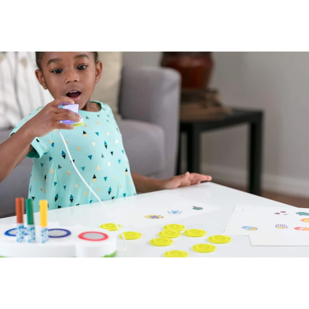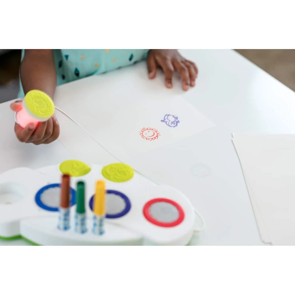 Let your little one enjoy some mess-free stamping with this light-up stamper from Crayola. This wonderful stamper unit includes three scented clear inks that leave marks only on the special Color wonder paper. When you press the stamper on one of the inks, the handle magically lights up to indicate the color. Kids can use this magical stamper with the included zoo-themed stamps to create fun artwork.