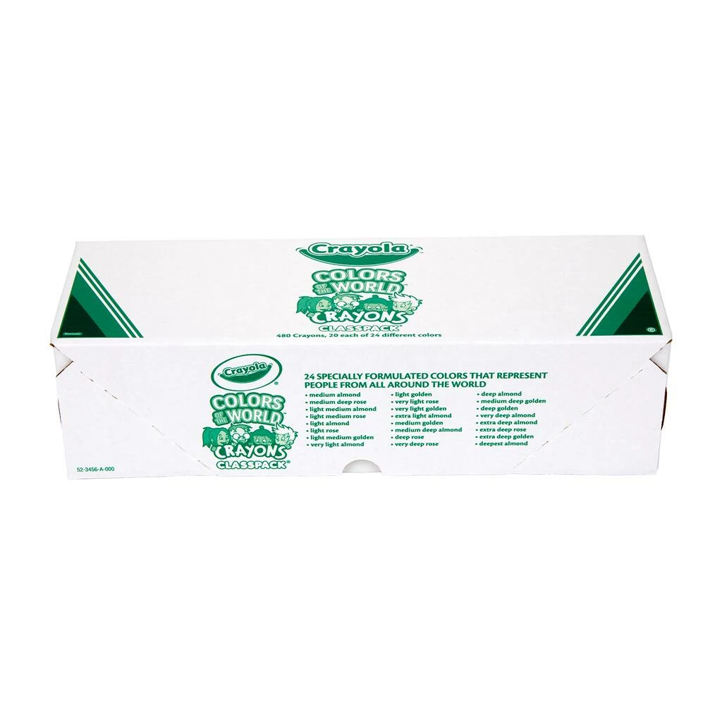 The Crayola Colors of the World Bulk Crayon Set contains 480 crayons in 20 sets of 24 specially formulated colors that represent people from around the world. These skin tone crayons are an exciting addition to your crayon collection, making coloring pages and drawings even more detailed and realistic. The subtle shades inside are formulated to better represent the growing diversity worldwide. Colors of the World fall into three main shades: Almond, Golden, and Rose – and all the darker or lighter shades in between. This pack makes a great addition to classrooms, art rooms, and more!