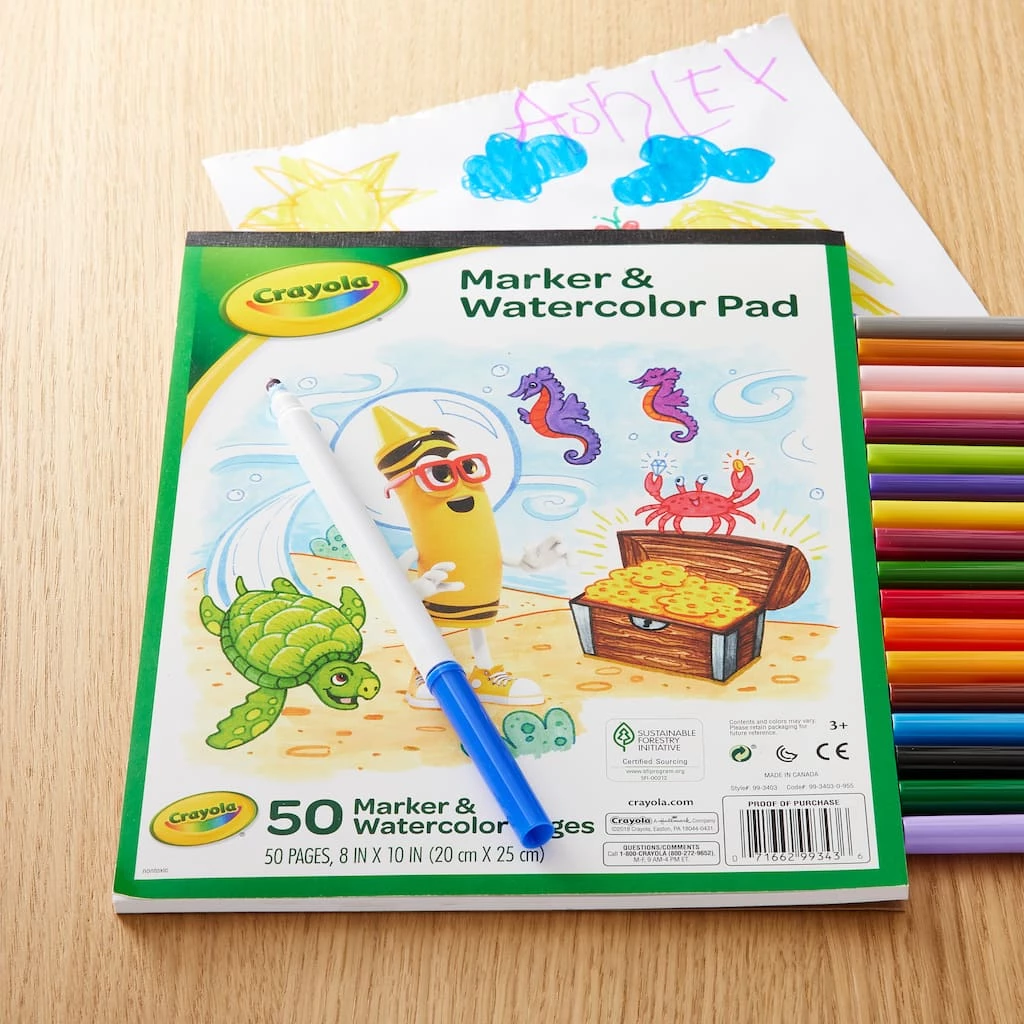 The Crayola Marker & Watercolor Pad offers kids lots of creative white space to let imaginations flow! There are fifty 10″ x 8″ bright white sheets that are perfect for coloring with Crayola Markers or painting with Crayola Watercolors. There’s even a project idea inside to get kids started. Pair this coloring pad with new markers and paints (sold separately) for a great bundled gift idea, or let kids experiment with the art tools they have at home.