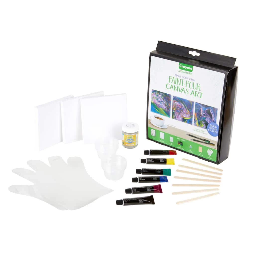 This all-in-one kit includes everything needed to design unique paint pour canvases! This incredible paint technique yields amazing, randomly colorful works of art. The kit comes with easy step-by-step instructions for a beautiful, elegant craft that can be completed in less than an hour. Great gift for arts and crafts lovers.