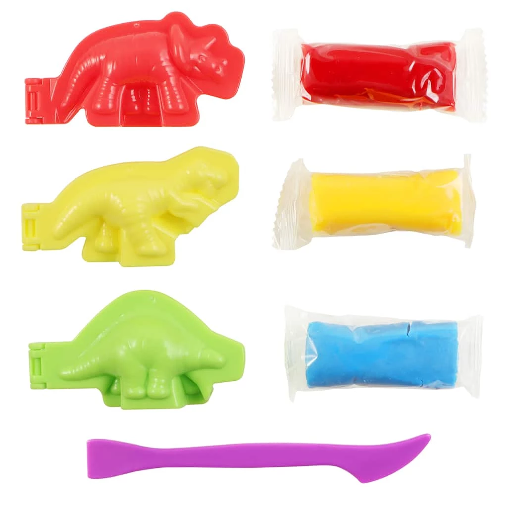 This dino dough play set is perfect for keeping your little ones creatively occupied. It includes a variety of contents necessary for engaging in this fun activity.